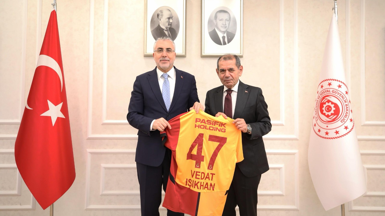 Çalışma ve Sosyal Güvenlik Bakanı Vedat Işıkhan, Galatasaray Spor Kulübü Başkanı Dursun Özbek ile bir araya gelerek spor kulüplerine yönelik destek mesajı verdi. Çalışma ve Sosyal Güvenlik Bakanı Prof. Dr. Vedat Işıkhan, Galatasaray Spor Kulübü Başkanı Dursun Özbek ile Bakanlık’ta bir görüşme gerçekleştirdi. Bakan Işıkhan, sosyal medya hesabından yaptığı paylaşımda, “Galatasaray Spor Kulübü’nün birçok branşta […]